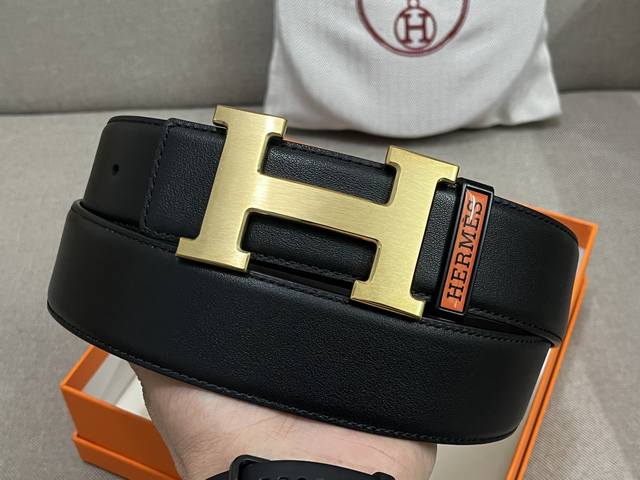 / Hermes.爱马仕 全套包装 男士真皮腰带 宽度3.8Cm 带身双面采用进口原版头层牛皮 配搭精品钢扣 可双面使用 触感厚实
