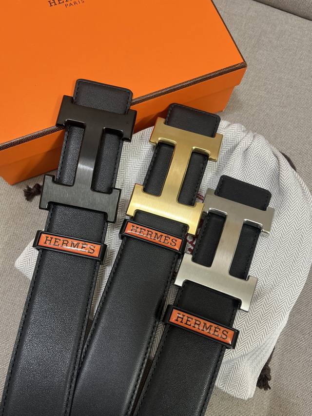 Hermes.爱马仕 全套包装 男士真皮腰带 宽度3.8Cm 带身双面采用进口原版头层牛皮 配搭精品钢扣 可双面使用 触感厚实
