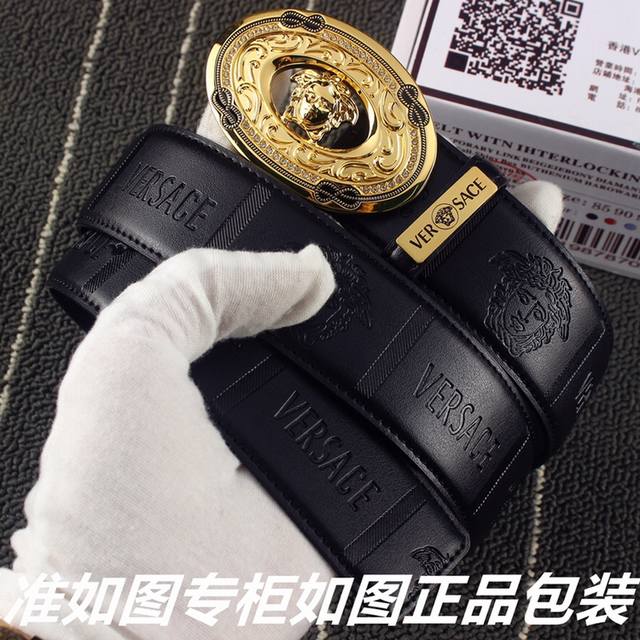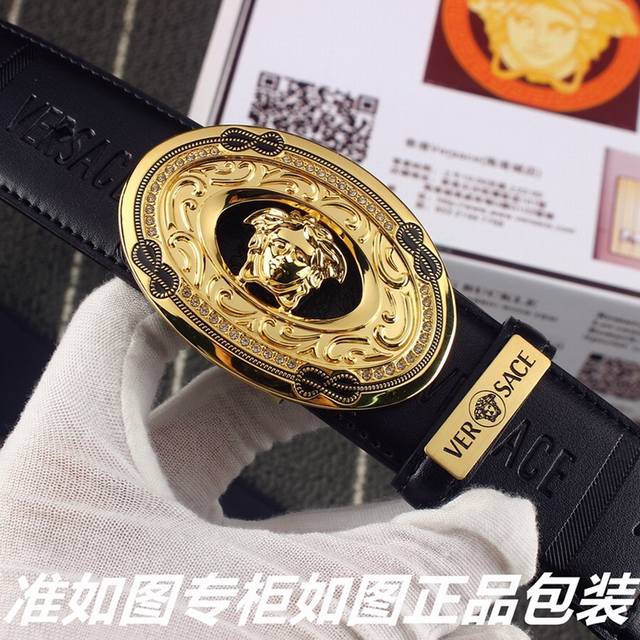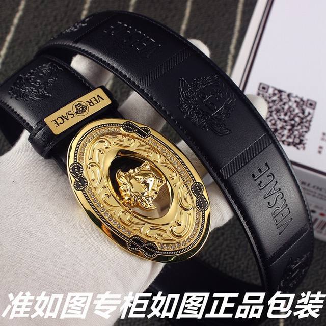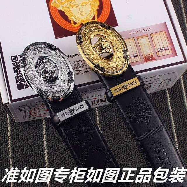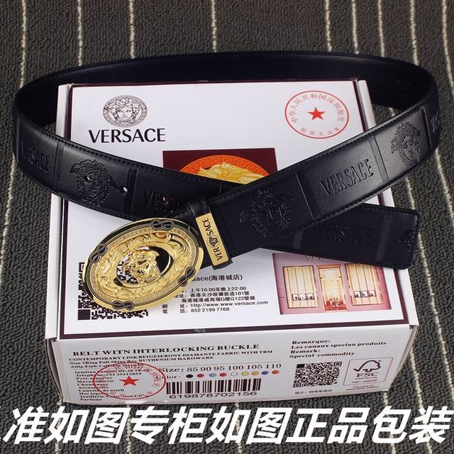 / 品名:范思哲.Ver Sace原单 型号:认准如图专柜包装,赠送打孔器 材料:百分百头层牛皮保证真皮。美人头,24K钢扣,复古雕花工艺专柜同等质量, 送人自用首
