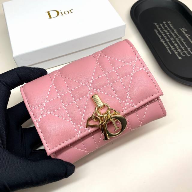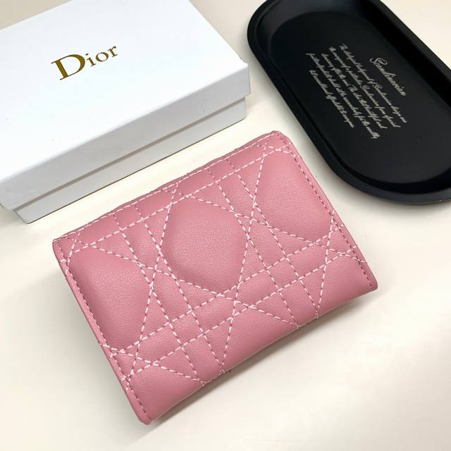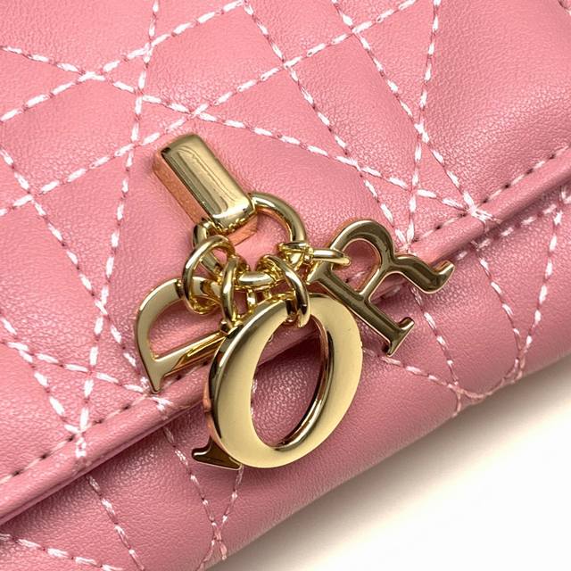 Dior 923颜色 黑色 米色 艳粉 兰色尺寸:11*8.5*3Dior 专柜最新款出货!这款迷你 Lady Dior 钱包设计精巧,空间宽敞。黑色羊皮革饰以藤格纹缉面线和“D.I.O.R.”吊饰,打造时尚经典的造型。可收纳各种日常用品,可轻松搭配 Lady Dior 系列的其他单品,打造配套的造型。