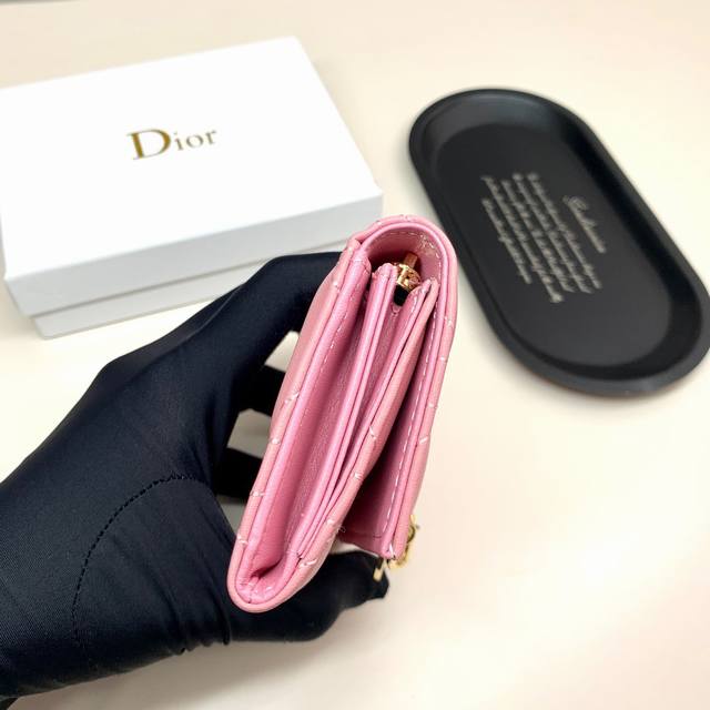 / Dior 923颜色 黑色 米色 艳粉 兰色尺寸:11*8.5*3Dior 专柜最新款出货!这款迷你 Lady Dior 钱包设计精巧,空间宽敞。黑色羊皮革饰以