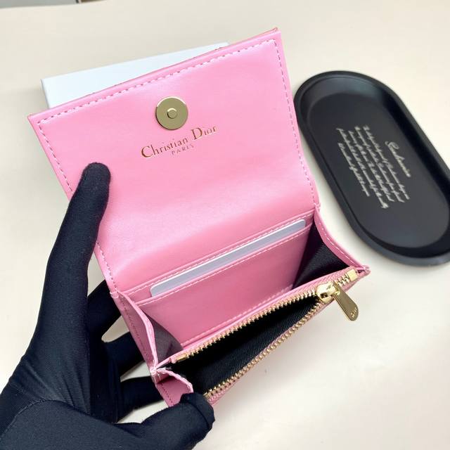 Dior 923颜色 黑色 米色 艳粉 兰色尺寸:11*8.5*3Dior 专柜最新款出货!这款迷你 Lady Dior 钱包设计精巧,空间宽敞。黑色羊皮革饰以