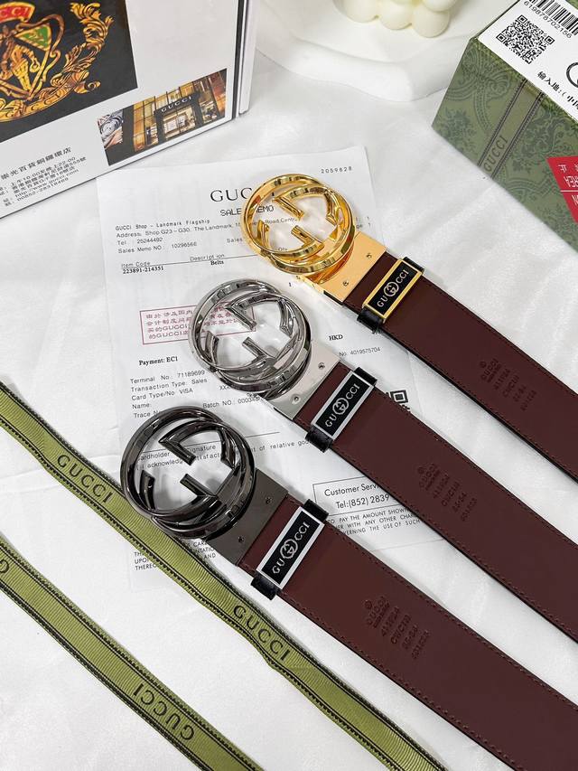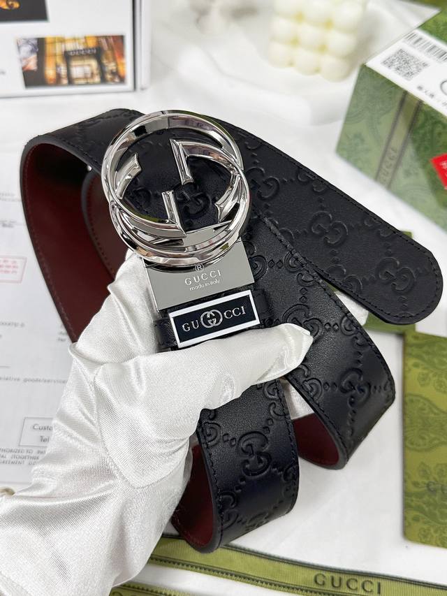 原版品质打孔 品牌:古奇g家 男款 颜色:黑 扣头:金 银 扣头:原版精品纯铜五金扣头 带身:原版牛皮 尺寸:宽约:3.8Cm...
