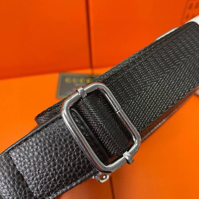 古驰: 、原单双面头层牛皮荔枝纹带身:黑啡双色一体,正反两面可用,搭配原单旋转扣,原产皮料定制,专柜宽度3.5Cm