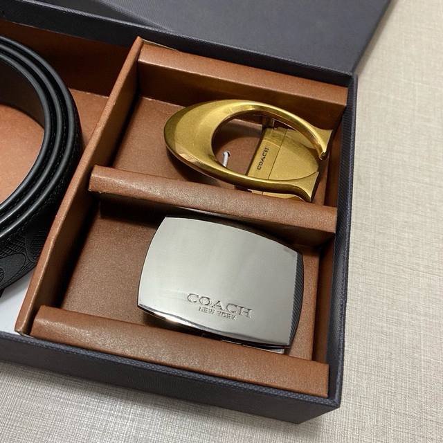/ 双扣礼盒套装 含礼盒 蔻驰coach礼盒套装皮带 爆款来袭3.5Cm宽 头层牛皮,专柜同款 高真空电镀五金 均可旋转扣头、长度可剪裁。一带身配二扣头自由搭配!专
