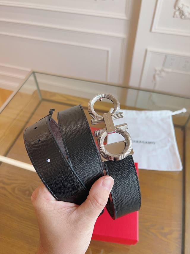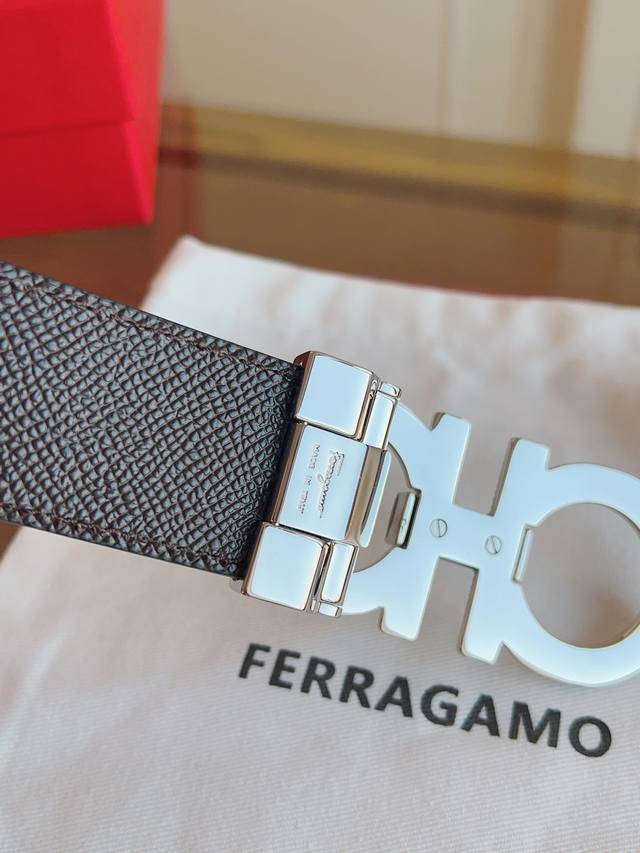 Salvatore Ferragamo菲拉格慕男士3.5Cm新款菱形切面金属夹扣,进口头层牛皮可双面外用!