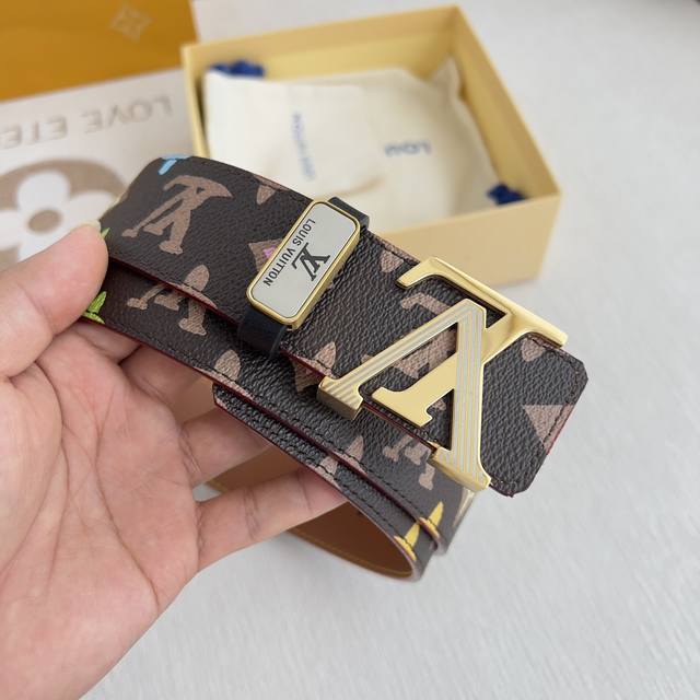材料:头层牛皮,挂扣系列,纯钢材质扣头,钯镀电镀工艺永不掉色。原版经典白彩色纹老花头层牛皮平纹土黄,金扣,可双面使用,纯钢材质扣头,专柜同等质量,送人自用首选