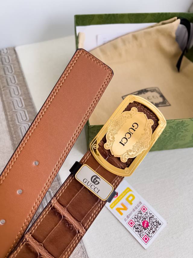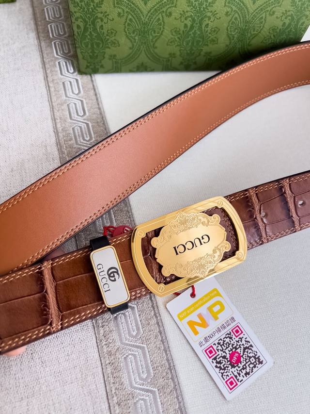 材料:百分百头层牛皮,保证真皮。24K纯铜扣专柜同等质量, 经典头层牛皮鳄鱼纹土黄平纹底,金扣,可自由裁剪,纯钢材质扣头,送人自用首选