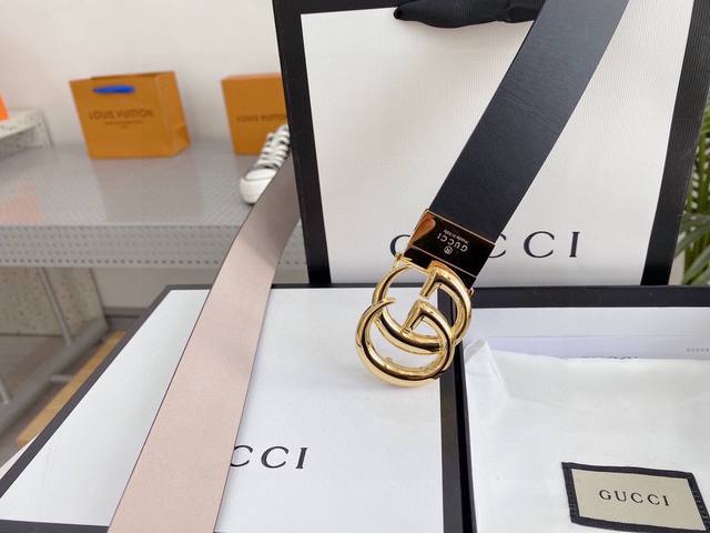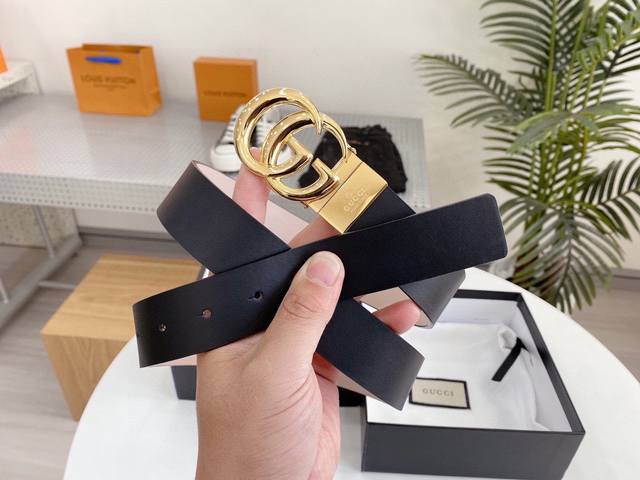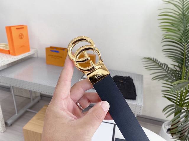 / 古奇:五金定制钢扣头。原单头层g面,双面头层牛皮 双色可用。带头可旋转 专柜宽度3.4厘米。每个男生都值得拥有的一款。