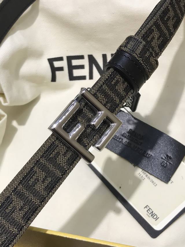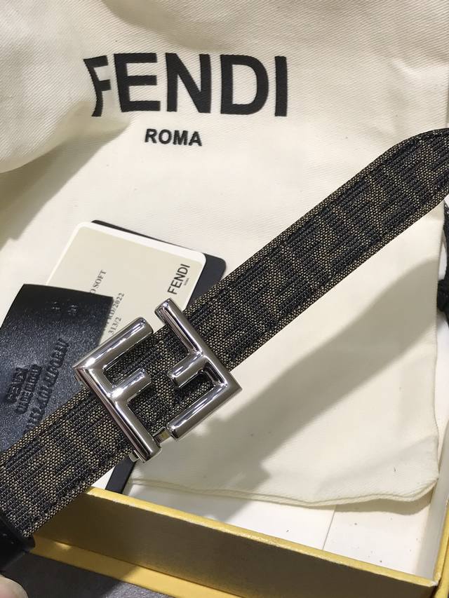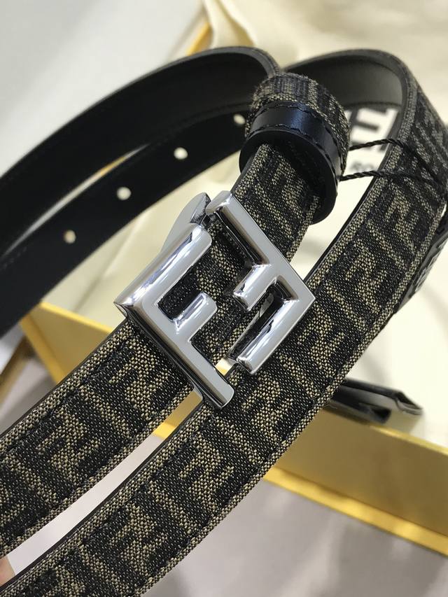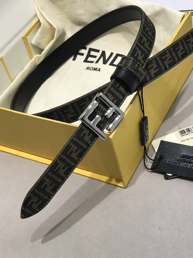 配送专柜包装 打孔针 新款 Fd 宽20Mm 老花纹f标志造型皮带。支持nfc钉扣式带扣。进口黑色小牛皮制成,镀金表面金属制品,原版细节走线,品质保证,非市场通