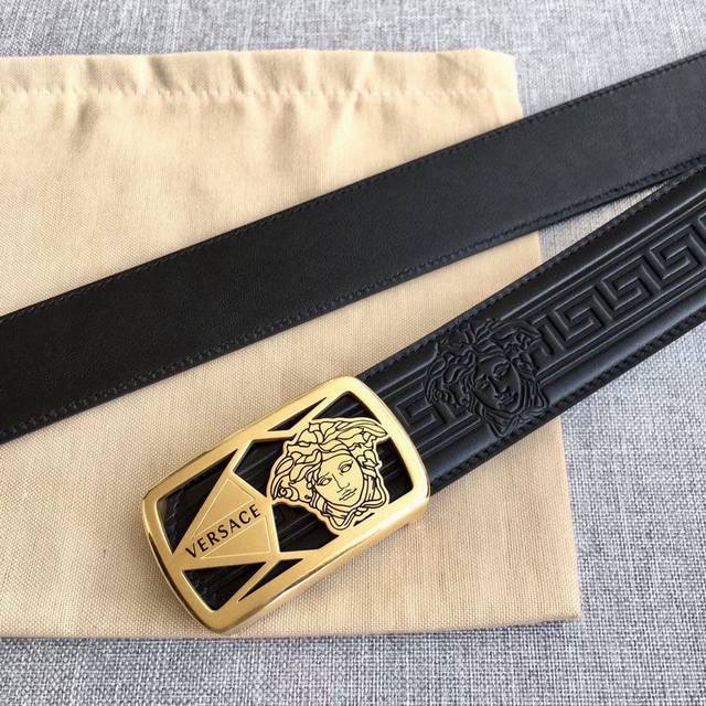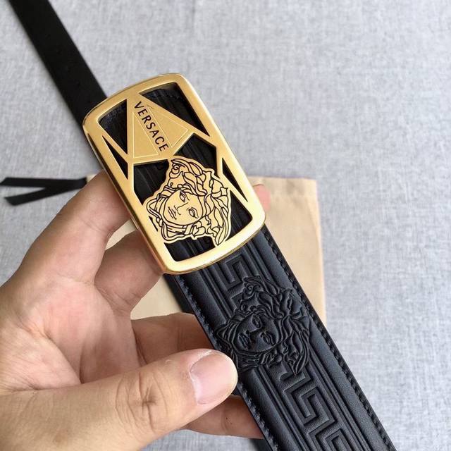 宽度3.5Cm Versace 范思哲 两面手掌纹 此款柔软的皮带饰有一个几何形状的希腊回纹别扣,既时尚又优雅