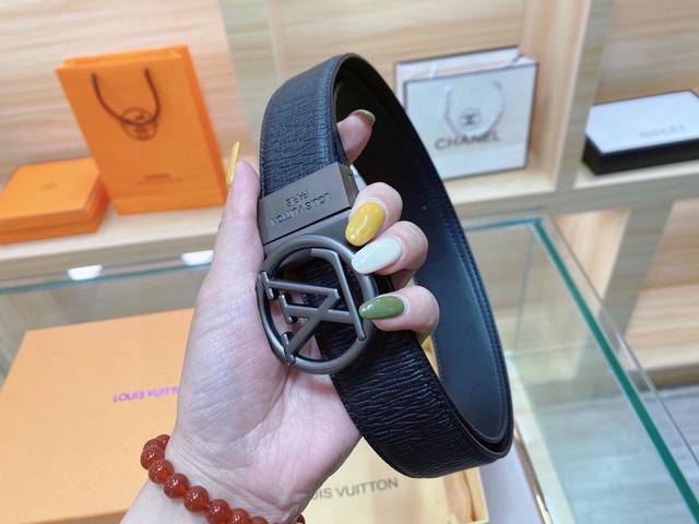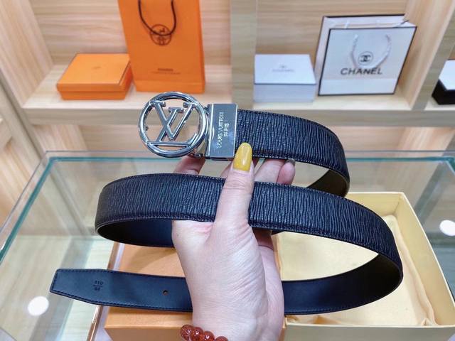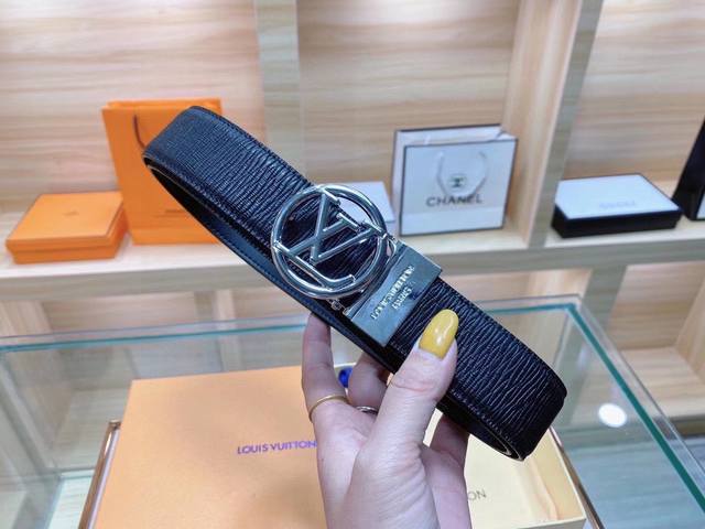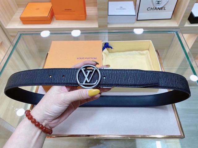 宽度4.0Cm L V 路易 進口荔枝紋雙面可用 搭配經典款扣頭金色 银色 可選 原版搭配。
