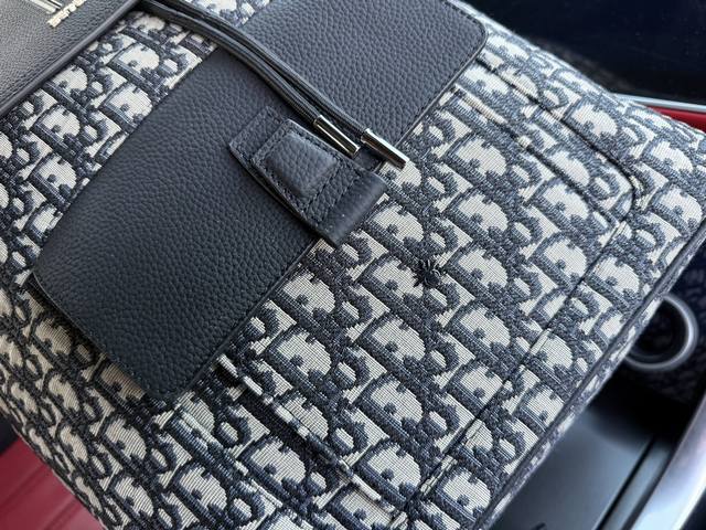 / 牛皮版高端货 新款 “Door 迪奥”双肩包 Dior迪奥 刺绣经典老花满印大容量 粒面小牛皮 书包背包双肩包 男款 米白色 黑色 高清五金logo标志、内里隔