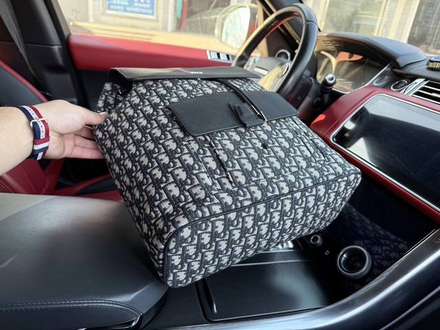牛皮版高端货 新款 “Door 迪奥”双肩包 Dior迪奥 刺绣经典老花满印大容量 粒面小牛皮 书包背包双肩包 男款 米白色 黑色 高清五金logo标志、内里隔层!专用内里。顺滑拉链、做工精致每个细节到位!男人必备款。规格:31X38X11Cm