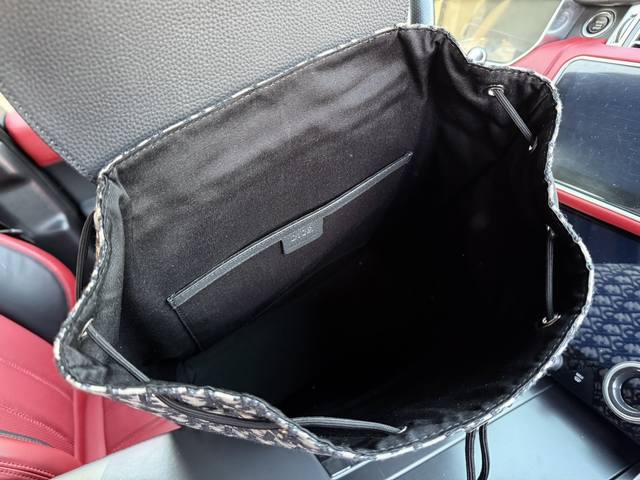 牛皮版高端货 新款 “Door 迪奥”双肩包 Dior迪奥 刺绣经典老花满印大容量 粒面小牛皮 书包背包双肩包 男款 米白色 黑色 高清五金logo标志、内里隔