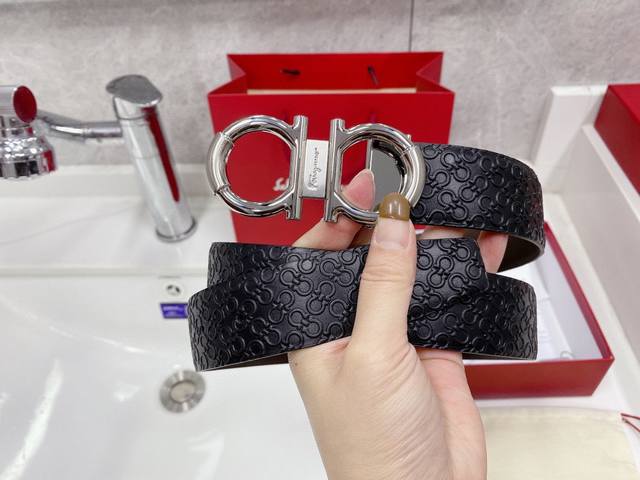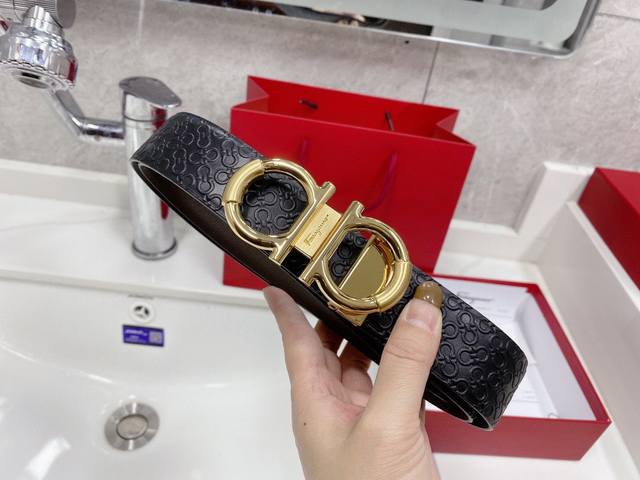 Ferragamo菲拉格慕男士专柜对版金属扣,头层牛皮双面外用腰带,商务通勤休闲场合均适合佩戴。3.5Cm