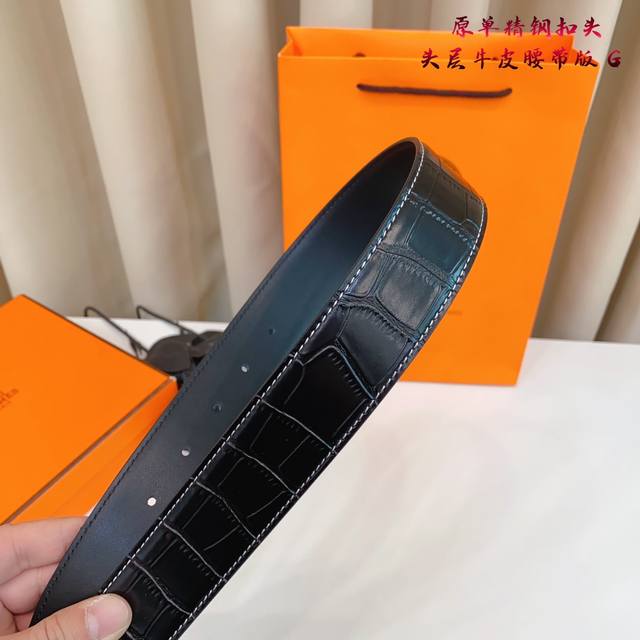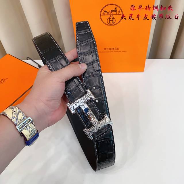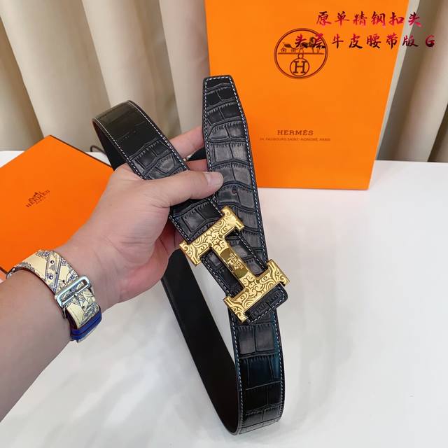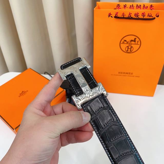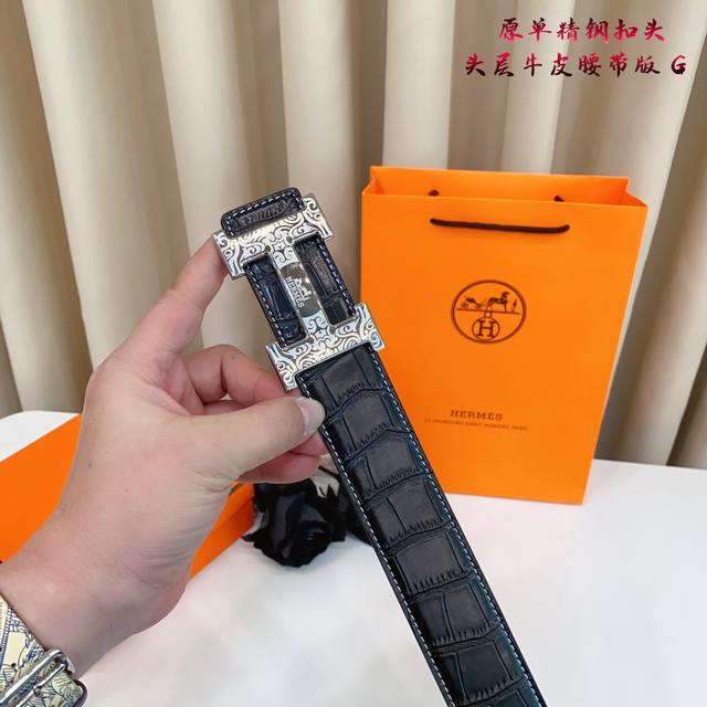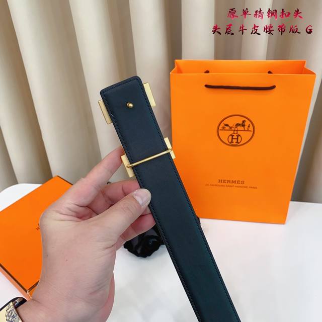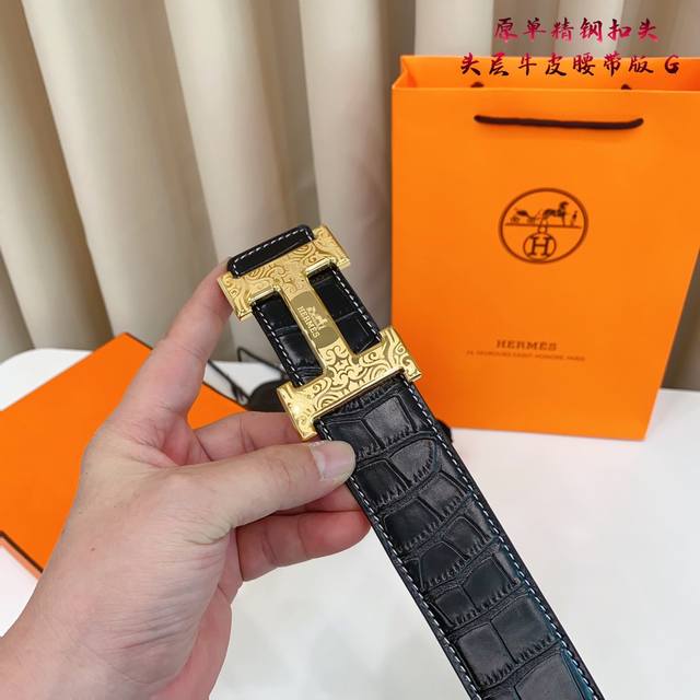 自动无孔腰带 Hermes爱马仕35Mm精致h自动扣,头层牛皮腰带,完美佩饰!