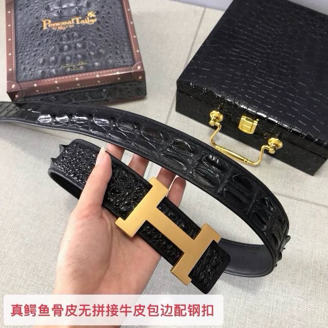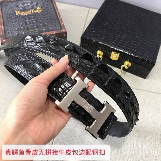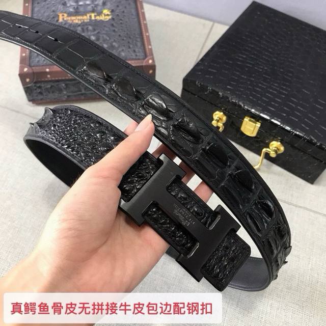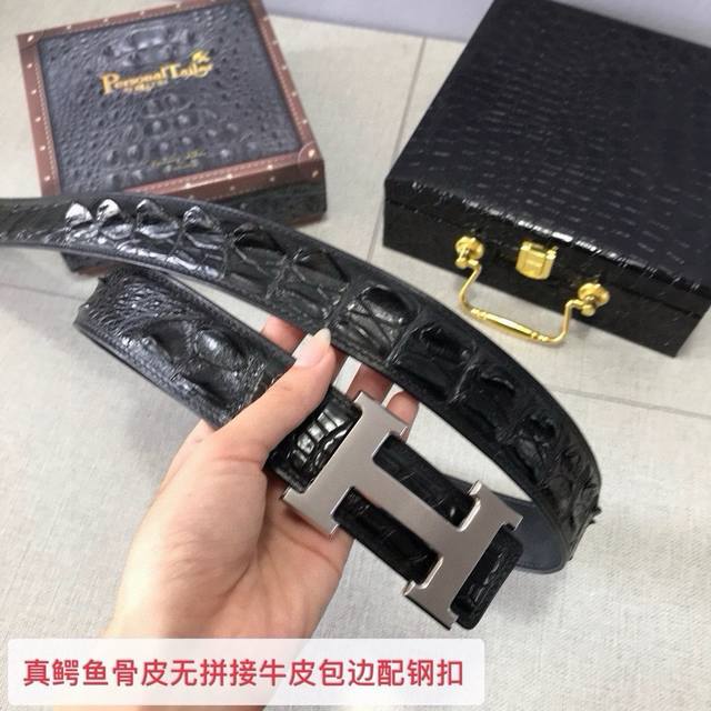 / 真鳄鱼骨皮无拼接皮配4.0Cm钢扣
