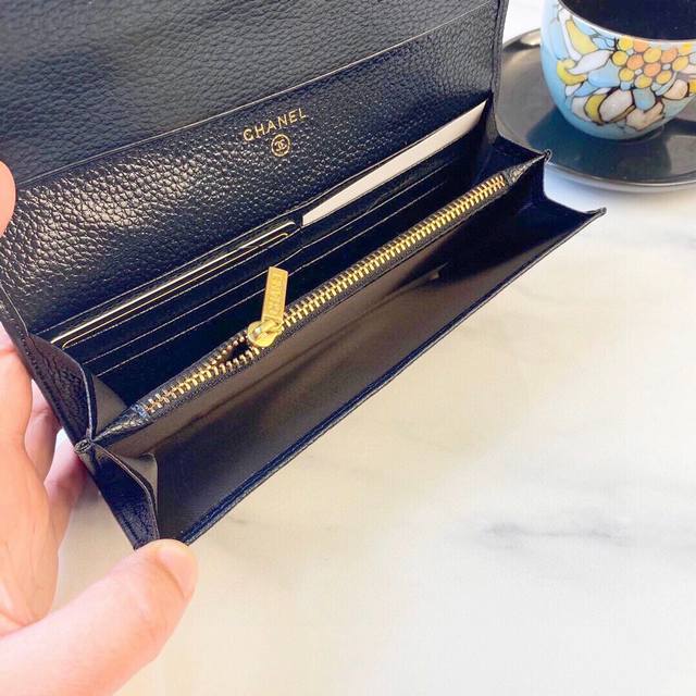 颜色 黑尺寸 19X10香奈儿爆款牛皮两折钱包款式经典做工精细耐磨耐用手感极佳