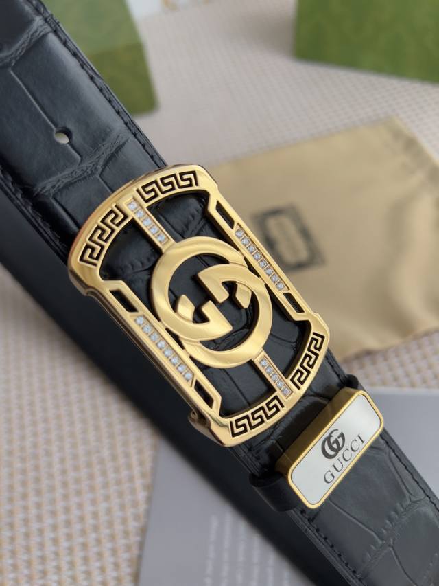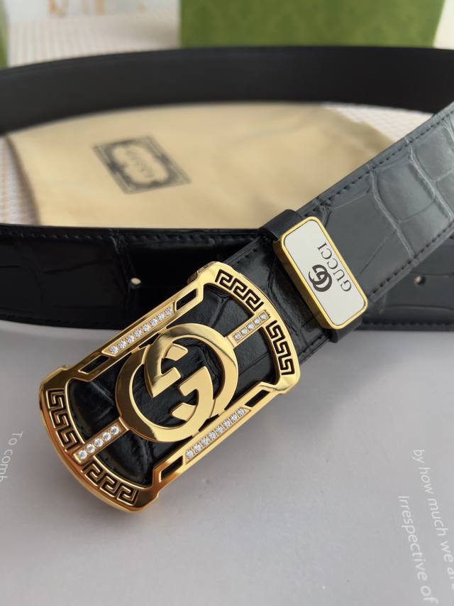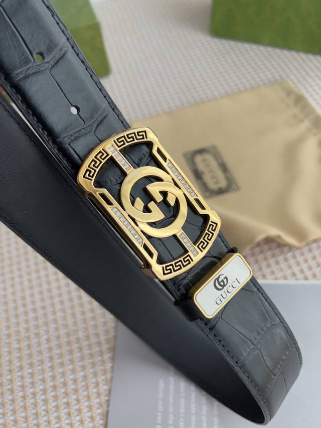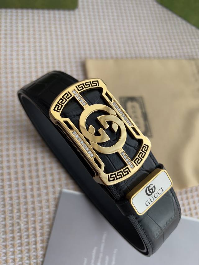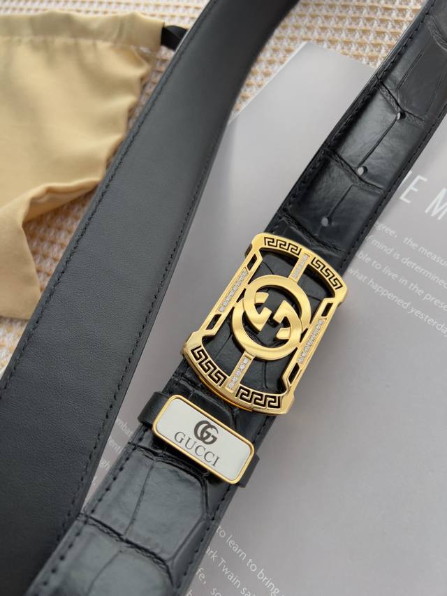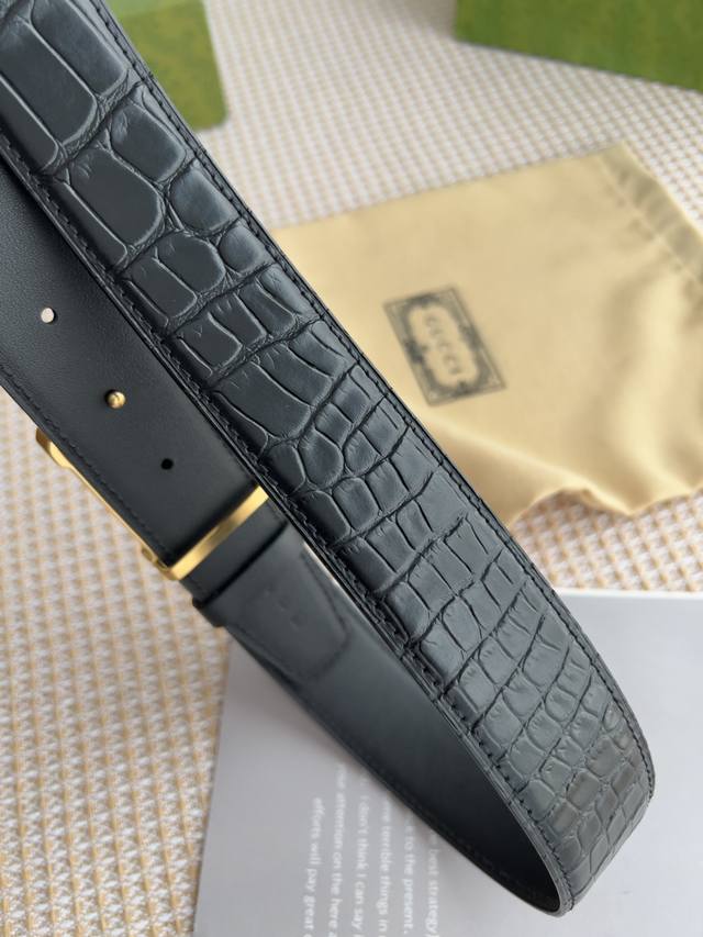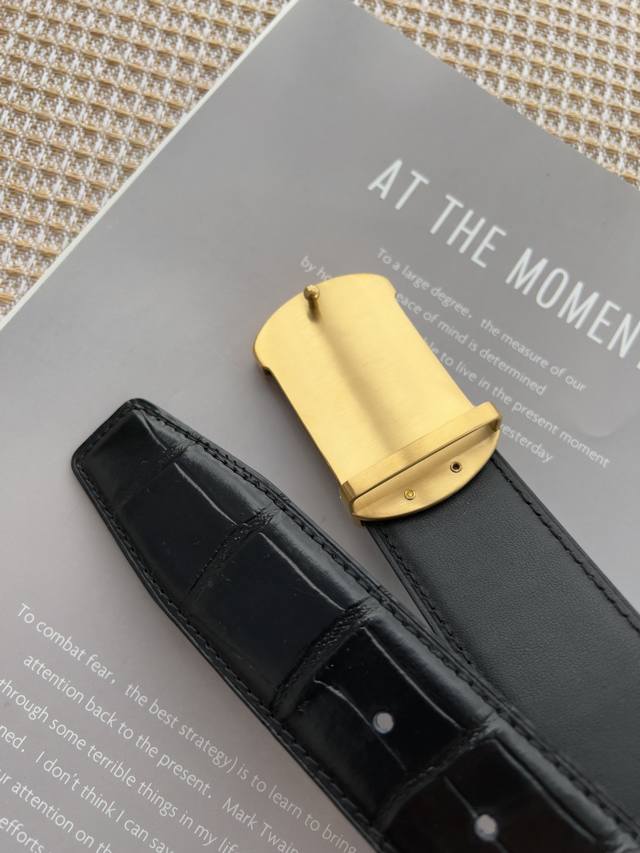 材料:百分百头层牛皮,保证真皮。24K纯钢扣专柜同等质量, 头层牛皮鳄鱼纹黑色平纹,金扣,双面可用,可自由裁剪,送人自用首选