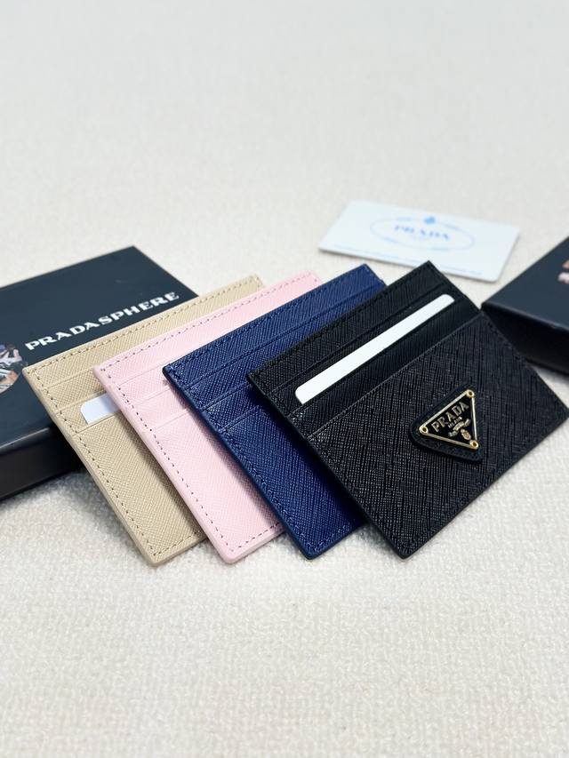 / 颜色 黑 粉 蓝 杏尺寸 9X5普拉达十字纹纯皮卡包 超级自留。卡包钱包两用特别实用