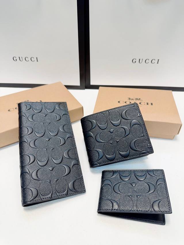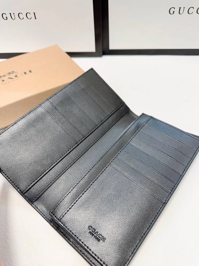 高端货 新款 “ Coach ”蔻驰手拿包 蔻驰男士手拿包 经典老花满印压纹长款拉链开合 牛皮 手拿包 钱夹钱包 男款杏色...
