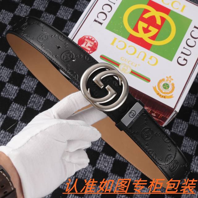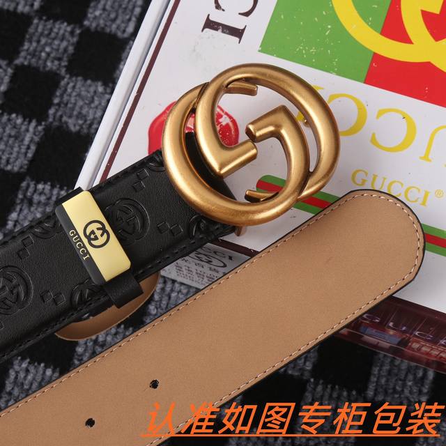 Gucci 古驰 经典永不过时 热压g进口牛皮 变色树膏底 双g对扣 大气上档次 大花 宽度40Mm