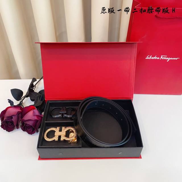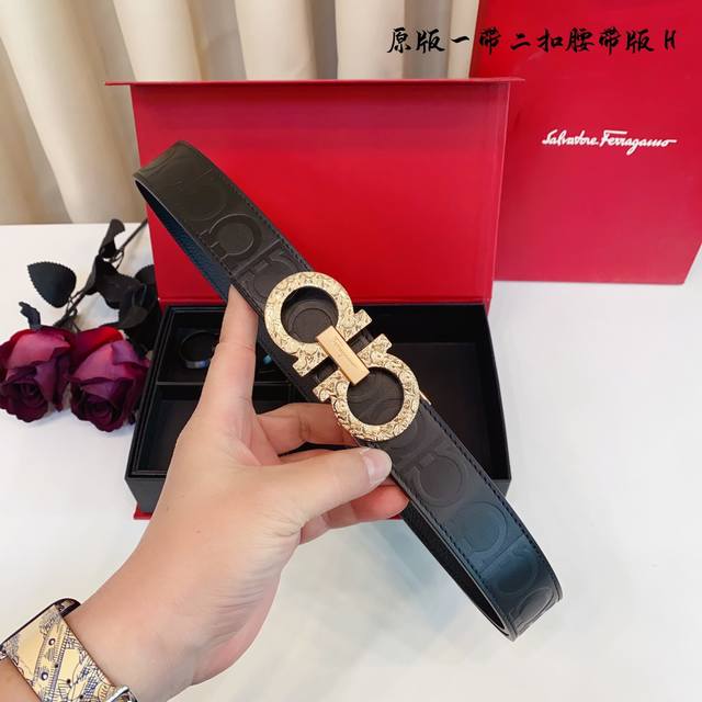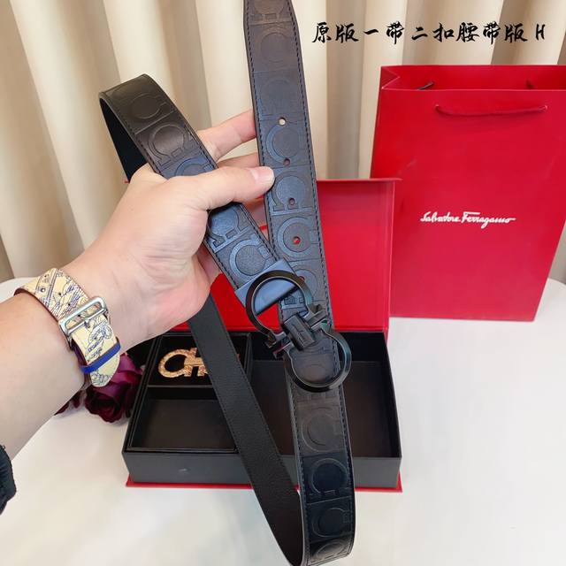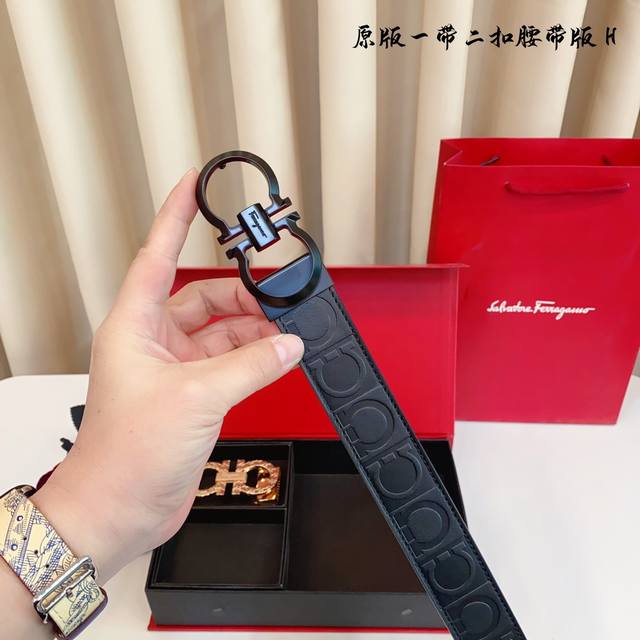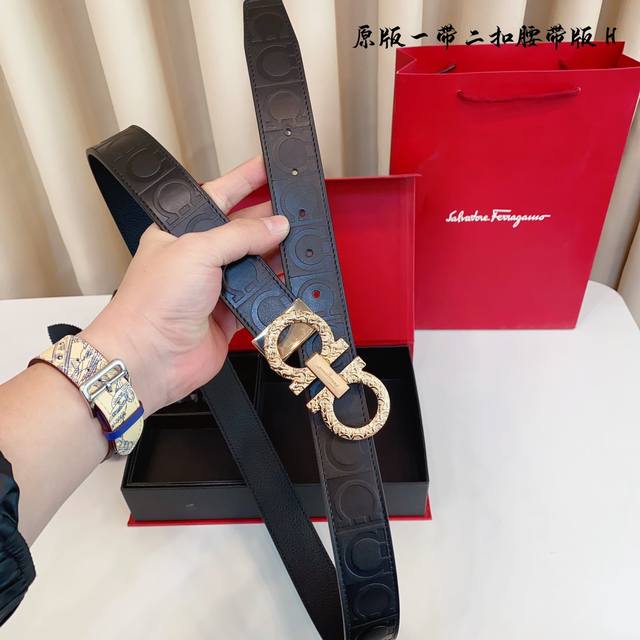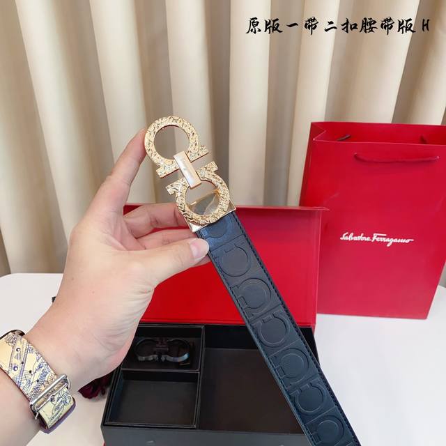 原厂皮 Ferragamo.菲拉格慕 全套包装 支持nfc扫码 宽度3.5Cm 高级定制款男士皮带 双面进口牛皮 可双面使用 自行选择搭配 真材实料...