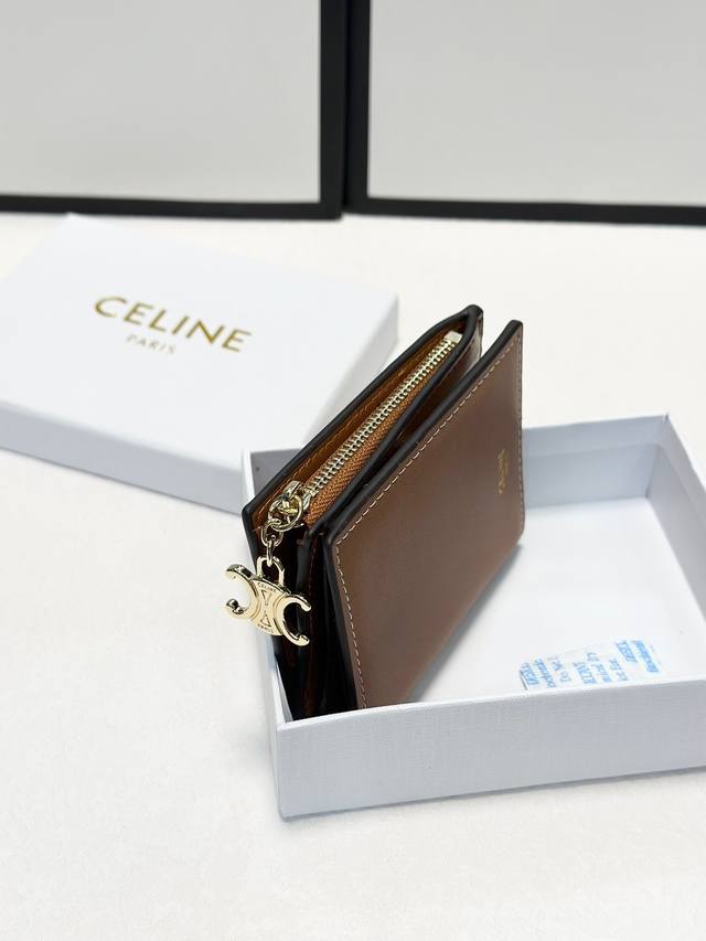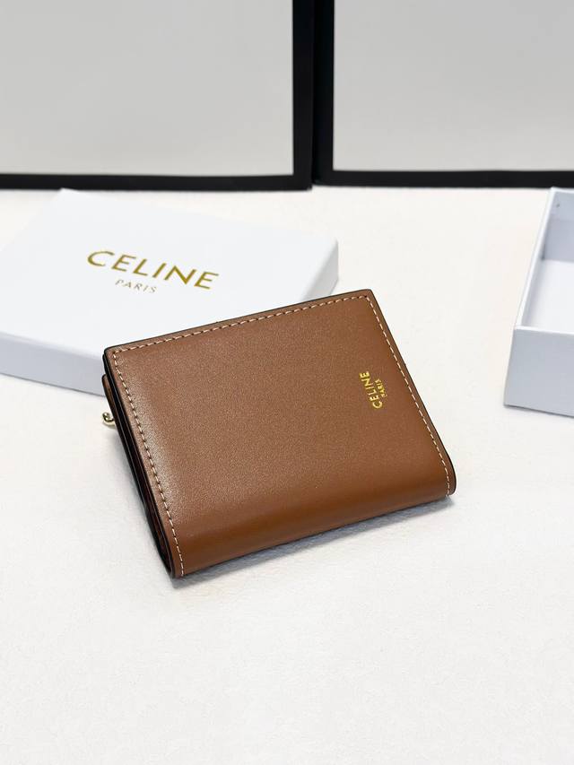 / Celine 8591 颜色 黑色 杏色 棕色 老花 尺寸 9* 10.5*2Celine 专柜最新款!Triomphe 紧凑型钱包 闪亮小牛皮 简约大气 ,精
