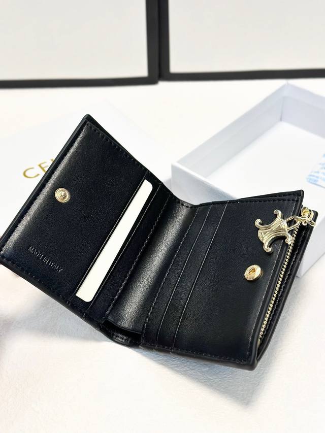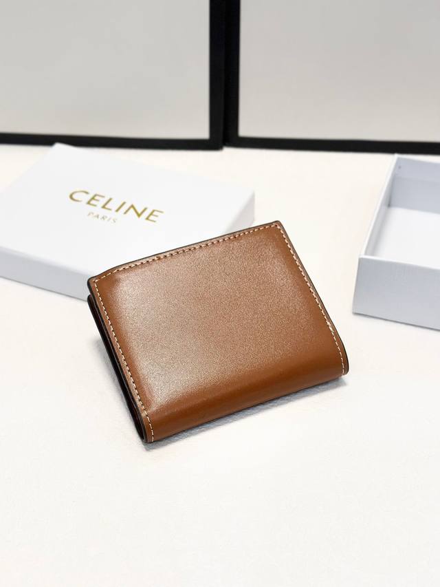 尺寸 9* 10.5*2Celine 专柜最新款!Triomphe 紧凑型钱包 闪亮小牛皮 简约大气 ,精致时尚!