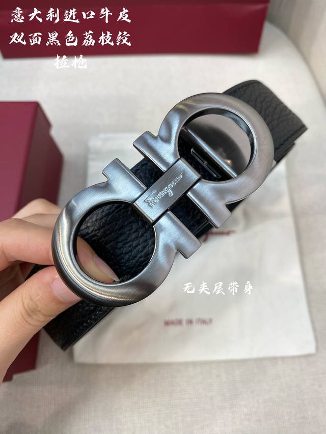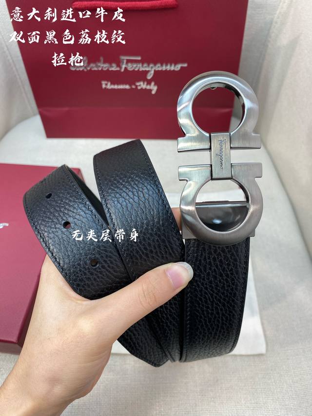 菲拉格慕 原单双面进口小牛皮带身.搭配原单精品钢扣。原产皮料定制,专柜宽度3.5Cm. 温馨提示:长度100-125Cm...