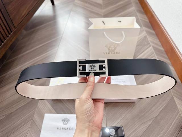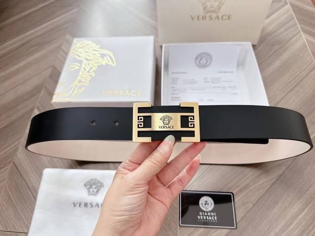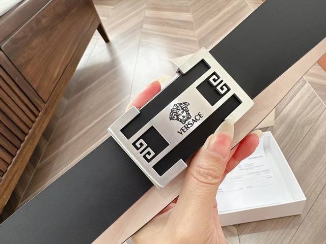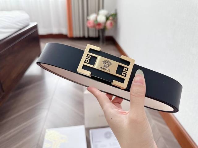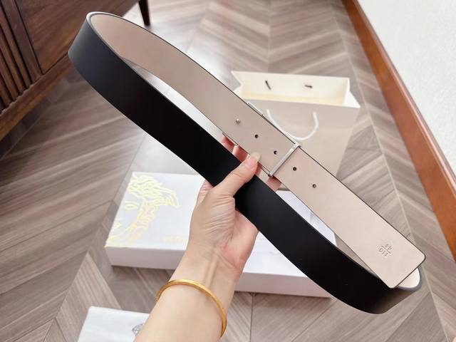 范思哲美杜莎Logo牛皮皮带 皮带非常有质感,Logo十分精致,搭配纯牛皮带身,宽度3.8厘米。 与西装绝配,休闲风也能驾驭...