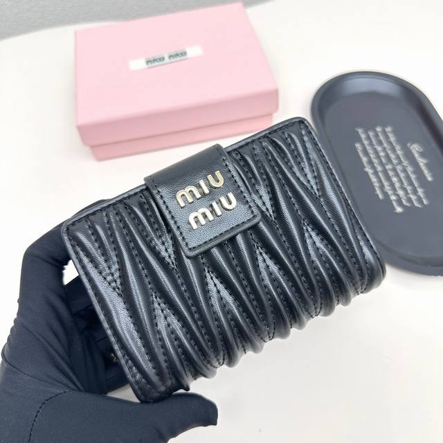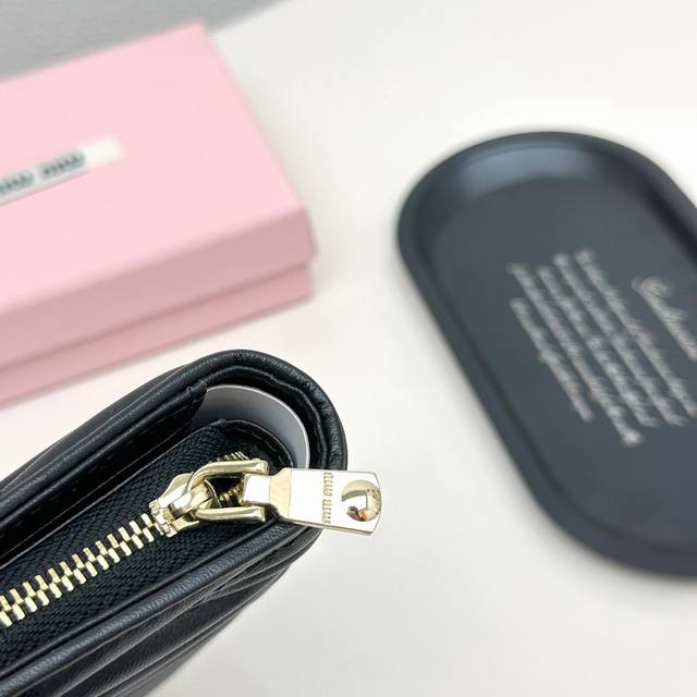 Miumiu 8357颜色 黑 粉尺寸 13.5X9.5X3.5专柜最新款火爆登场!采用头层小羊皮,做工精致, 媲美专柜!多功能小钱包,内隔丰富,超级实用!
