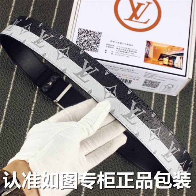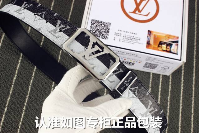 路易威登 Louis Vuitton 正版开模 此款腰带双面可用 采用lv专用面料pvc 搭配意大利原厂定制进口牛皮带身 精密电镀标志性五金