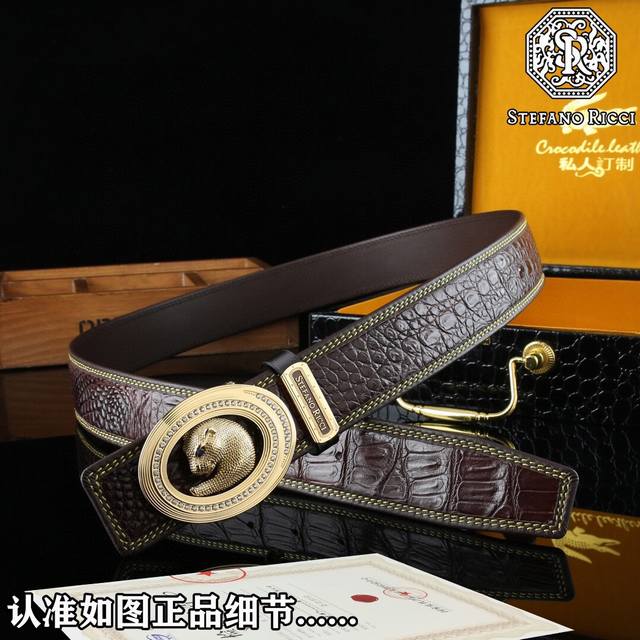 带身材质正面:38Mm宽度采用野生鳄鱼皮搭配底皮进口树膏牛皮腰带,真空电镀五金扣头实物拍摄 一等一好质量 ,长短可自行裁剪送礼自用首选上身效果赞赞赞手工专业到位! 包装配送,专柜礼品盒,提袋,发票,打孔器,证书,海关贴 购买认准细节谨防受骗!