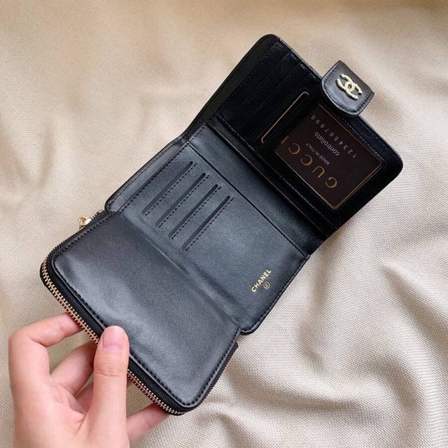 颜色 黑尺寸 14.5X9香奈儿顶级小羊皮零钱包里外全羊皮经典搭配,时尚百搭