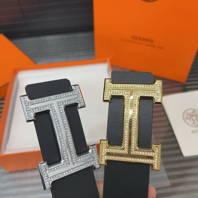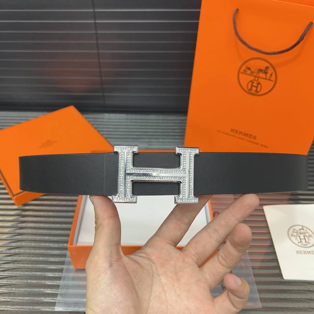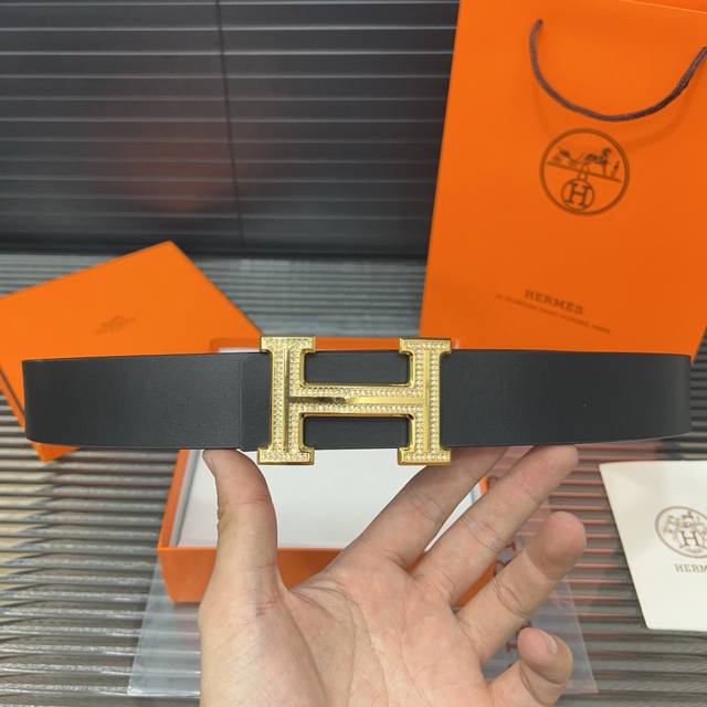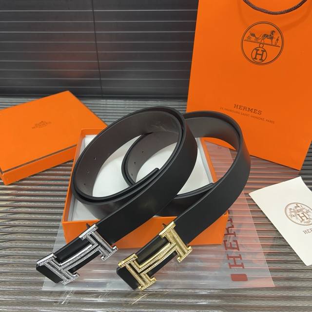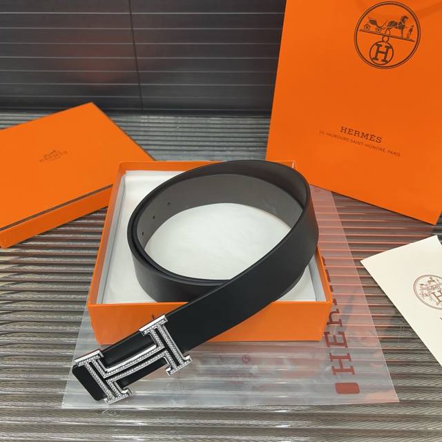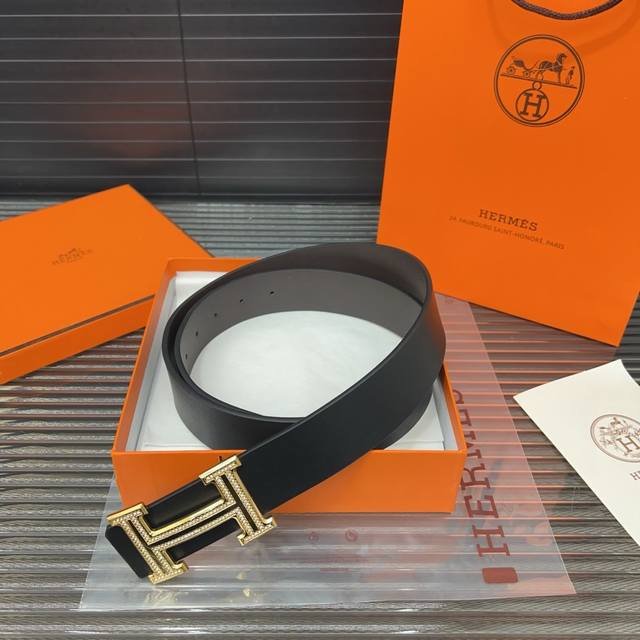 / Hermès 爱马仕 牛皮钢扣印花扣眼腰带 男士经典款皮带 两色可选 时装搭配必备款 优质扣头 采用原厂牛皮带身 高品质全套包装 礼盒 礼袋 小票
