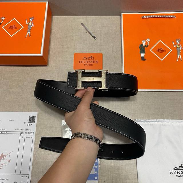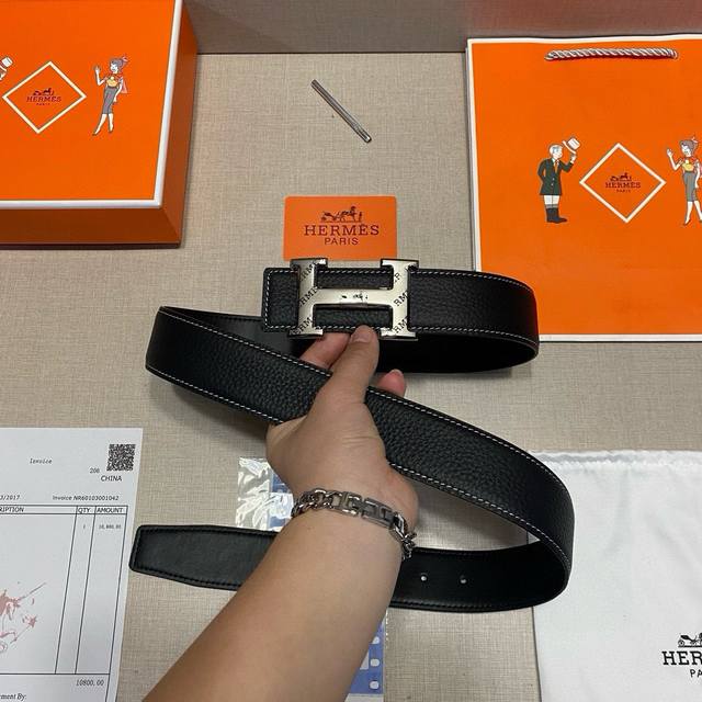 爱马仕 宽3.8Cm进口原版togo皮腰带 扣头金属工艺,经手工打磨而成。扣头可随意选择搭配皮。双面使用,高端商务休闲款...