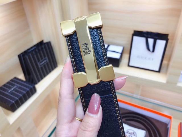 爱马仕原单专柜1:1秘新款扣头搭配双面进口皮腰带采用意式缝线 提升了皮带本身的档次带头精钢打磨 不褪色宽度3.8工艺精湛结合原单支持验货! 附带原版包装