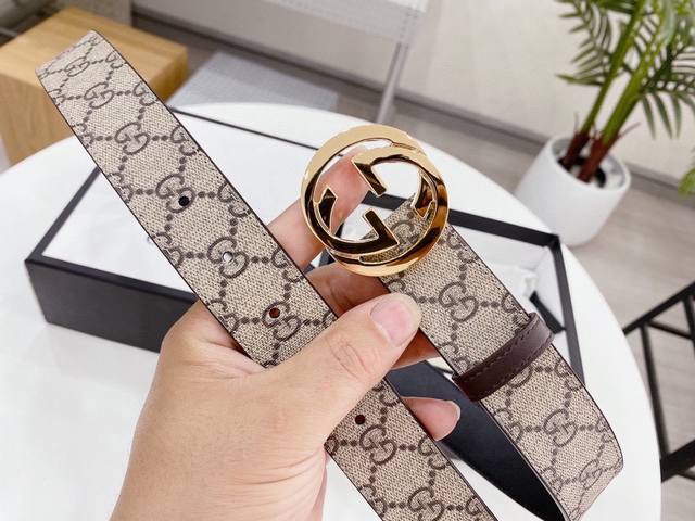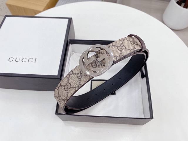 古驰gucci精品款 ☆双扣礼盒套装 含礼盒 专柜有售 Gucci专柜在售正品 此款采用头层牛皮制作 走线油边细致 正品开模...