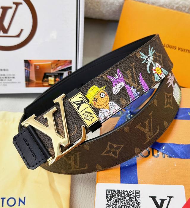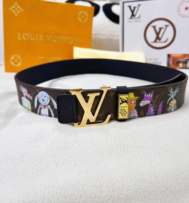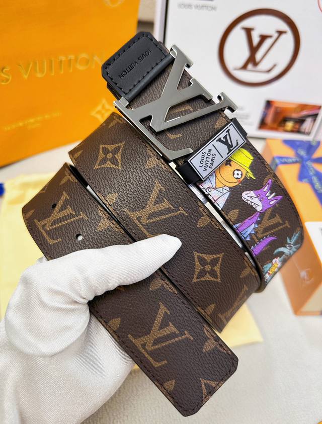 皮带:Lv..路易..顶级原单复刻. 腰带:百分百头层牛皮,保证真皮。贴皮工艺24K纯钢扣涂鸦彩绘图案艺术双面可用专柜同等质量, 送人自用首选 包装: 请认准如