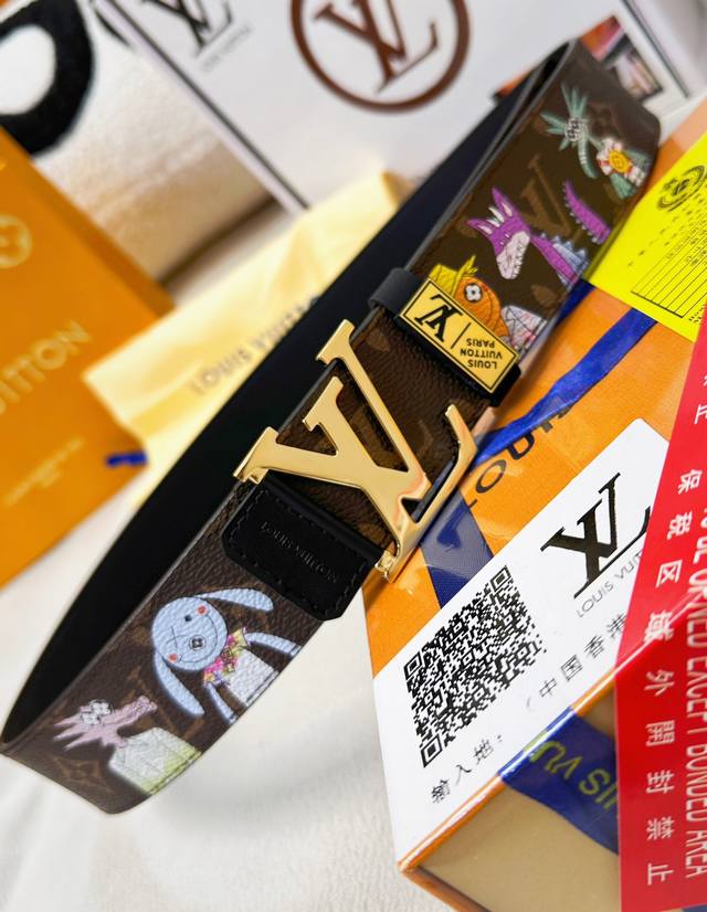 / 皮带:Lv..路易..顶级原单复刻. 腰带:百分百头层牛皮,保证真皮。贴皮工艺24K纯钢扣涂鸦彩绘图案艺术双面可用专柜同等质量, 送人自用首选 包装: 请认准如