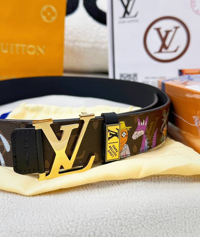 皮带:Lv..路易..顶级原单复刻. 腰带:百分百头层牛皮,保证真皮。贴皮工艺24K纯钢扣涂鸦彩绘图案艺术双面可用专柜同等质量, 送人自用首选 包装: 请认准如