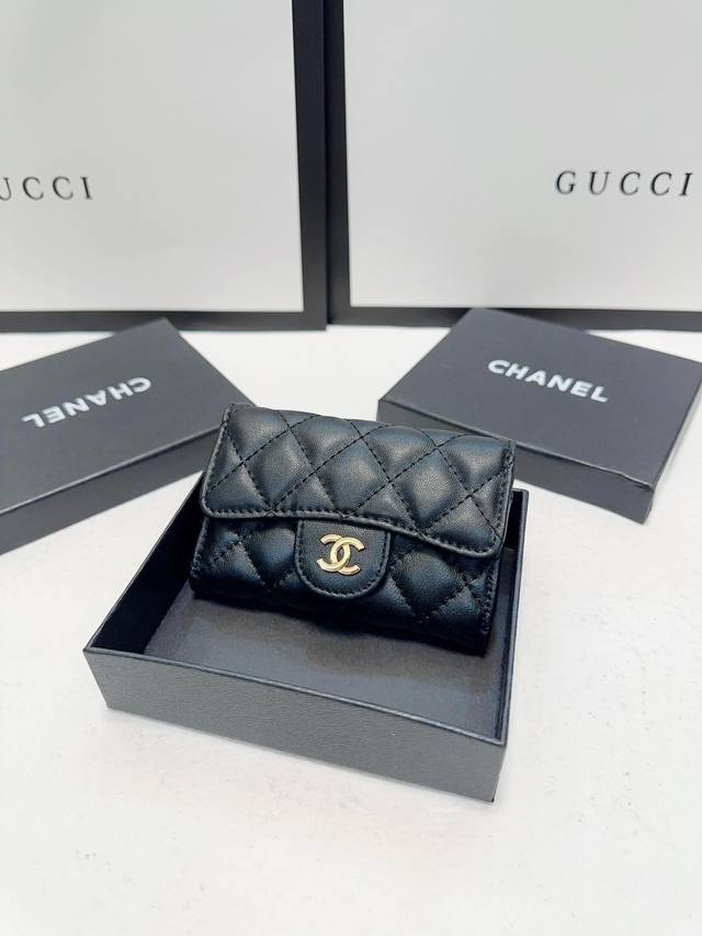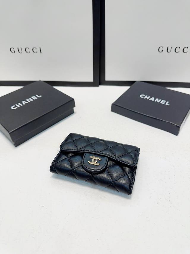 / 颜色 黑尺寸 10X5Cf卡包对版,小红书主推款,羊皮金扣五金内_礼盒包装,现货