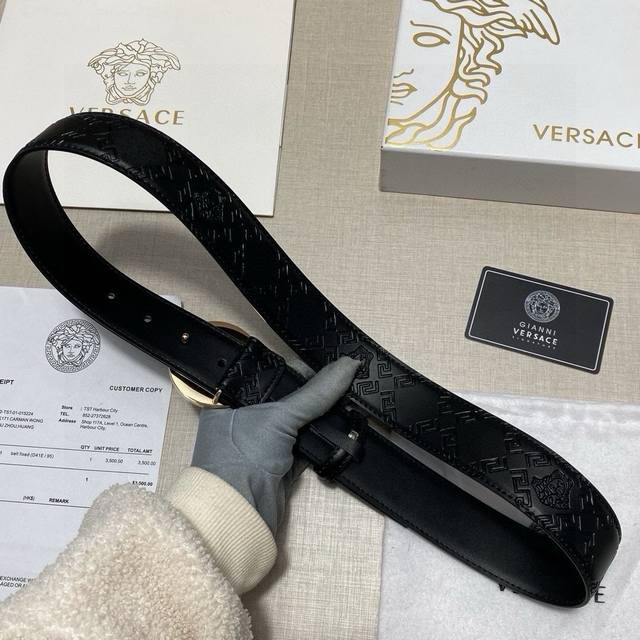品牌:范思哲 新款皮带 等级:头层牛皮、新款开模。带宽3.8厘米.油边精致 电脑车线 实物拍摄无修饰 上身效果超好.配专柜全套包装.送礼自带首选 送打眼针 。