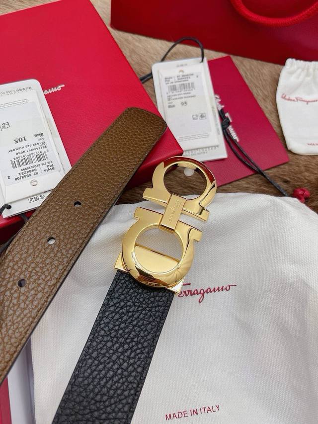 原厂皮 Ferragamo.菲拉格慕 全套包装 支持nfc扫码 宽度3.5Cm 高级定制款男士皮带 双面进口牛皮 可双面使用 自行选择搭配 真材实料 很有质感