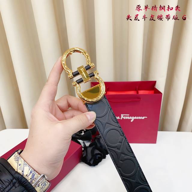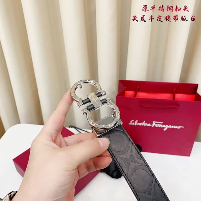 / Ferrago 菲拉f 雙面头层牛皮 全新效果精钢材质搭扣 寬度35毫米 該皮帶可調節 且能根據需要裁剪達到修身效果
