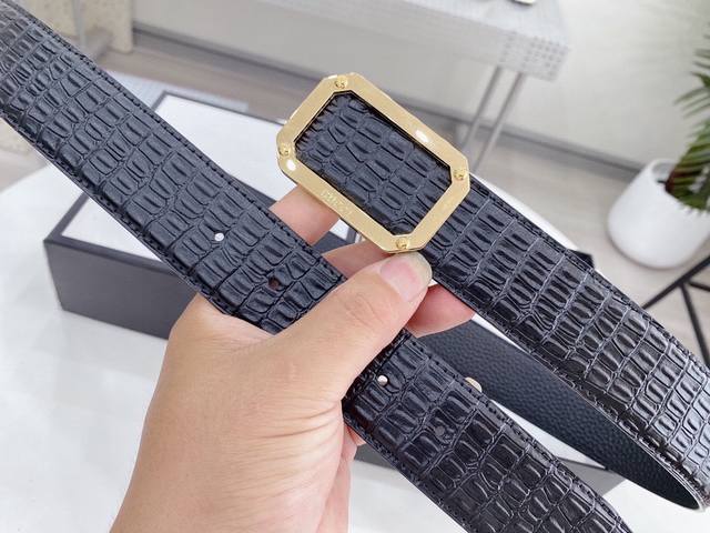 Gucci腰带经典款,简洁的款式和精致抛光面互锁g金属扣,轻松应对工作场合以及下班后的休闲派对。3.5Cm