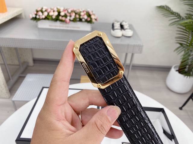 顶级原单复刻 ,配送专柜全套礼盒包装,Gucci 古奇皮带,官网经典 正品规格 3.8Cm原版品质双面进口头层小牛皮腰带...