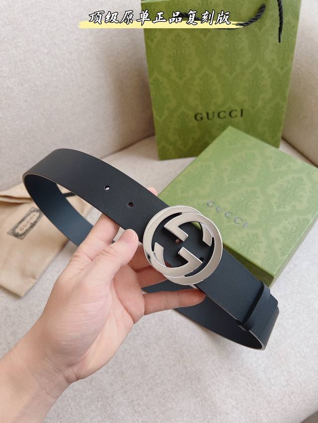 原版品质滑道 品牌:古奇g家 男款 颜色:黑 扣头:金 银 枪 扣头:原版精品纯铜五金扣头 带身:原版牛皮 尺寸:宽约:3.8Cm...